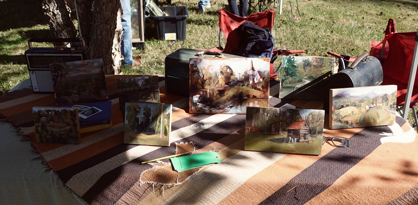 The week culminated with us displaying his collection of paintings on our bedspreads, alongside pieces of our life, and getting the chance to speak to any human being who stopped by to connect, look closer, learn more (our favorite thing).