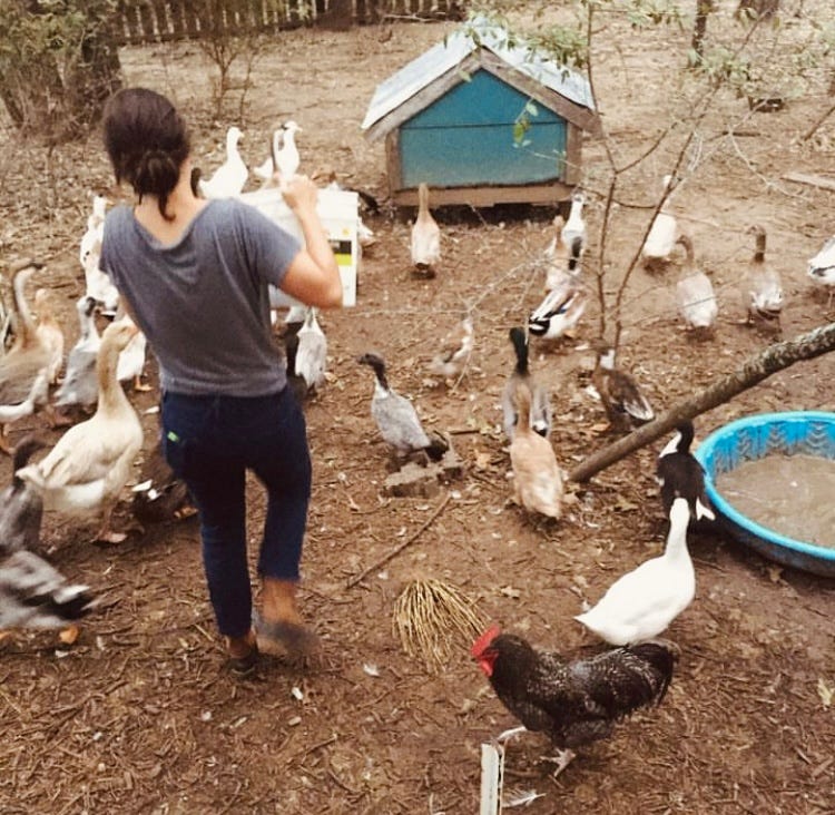 The chickens remind me of our months at the farm. The yurt we slept in. The common house with no hot water. The things I didn’t fear. The wake up call — Ducks and geese asking for food. Knocking at my knees. The jeans I wore. The working Sarah. I say I’m like a farm dog I like having a role … my lane. The rest is grey area. Too blurred and uncertain. There I had a job. Sunrise, every morning. Coffee at the table. Tacos. Paint. Community. It was simple. It was filling and fulfilling. No worry of what was up next.